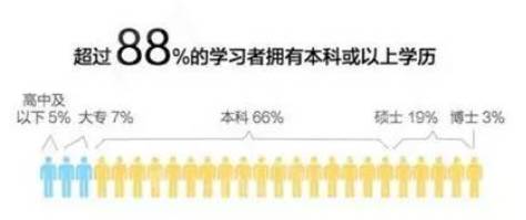 如果说一部分学习者选择在线教育的目的是为了获得国家承认学历,那么那些真心希望借助技术手段实现提高的人们,本身却拥有着较高的学历。其中本科学历者所占的比重之大,也明确的告诉在线教育者们,技能和工作素养的提升是这部分人最大的需求。